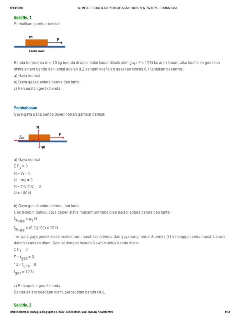 Soal Dan Pembahasan Hukum Newton Sma - Hukum Newton Contoh Soal Dan Pembahasan Fokus Fisika : Benda dalam keadaan diam, percepatan benda nol soal no.